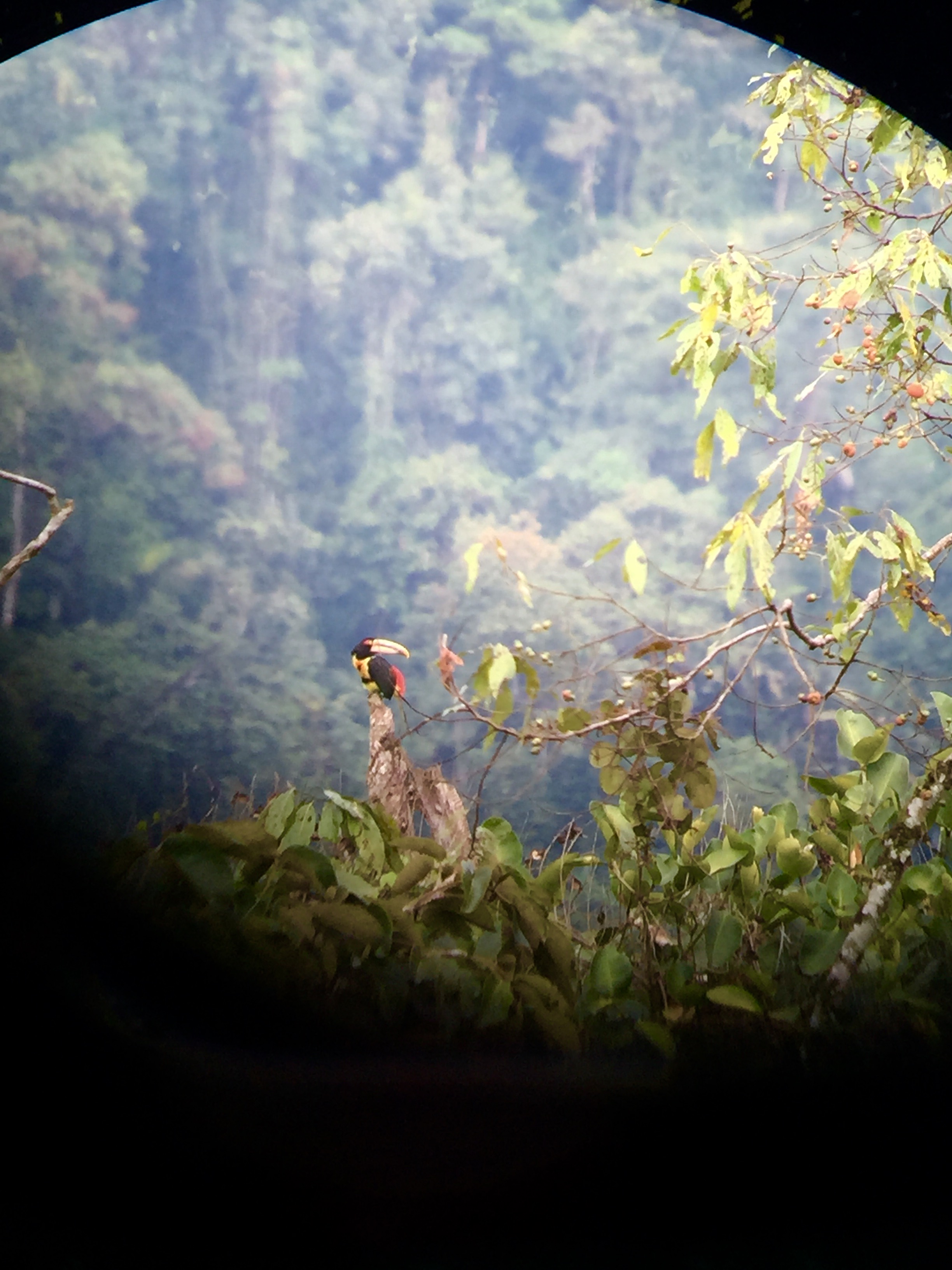 D’ici on peut voir des colibris qui viennent manger directement aux balcons, des gigognes, des oiseaux inconnus bleu pale, des oiseaux inconnus jaune et noir.