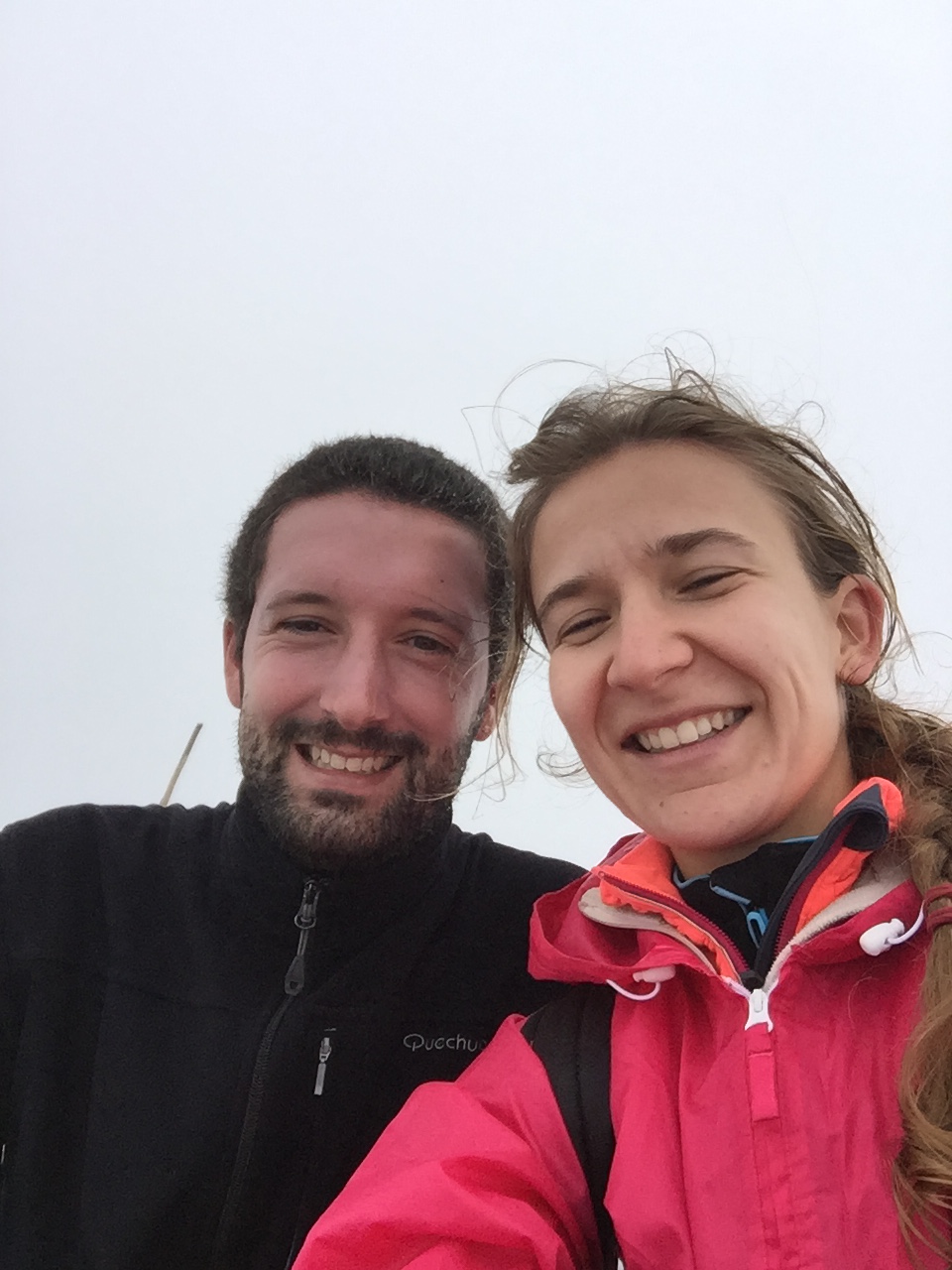 Enfin nous sommes en haut ! La vue sur les nuages est sublime 🙂 (derrière nous. Ok, on voyait juste rien)