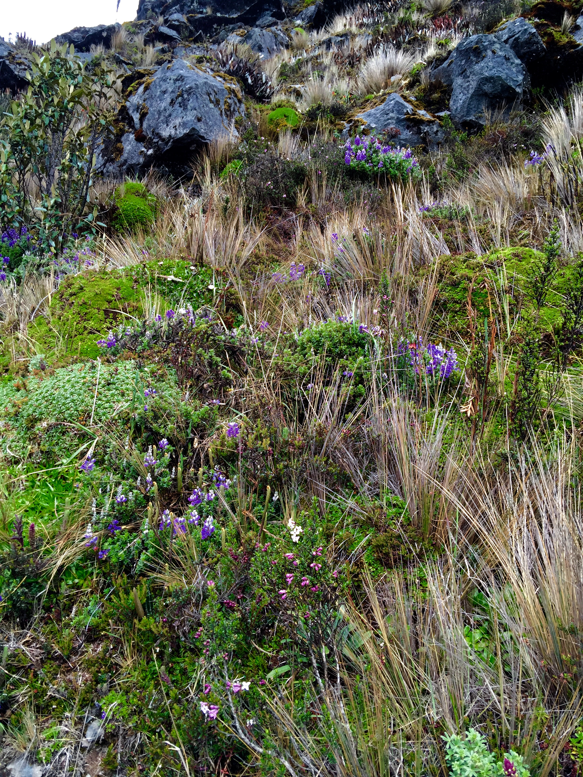 Une fois passées les herbes, nous avons été étonnés par la flore très riche des versants du volcan.