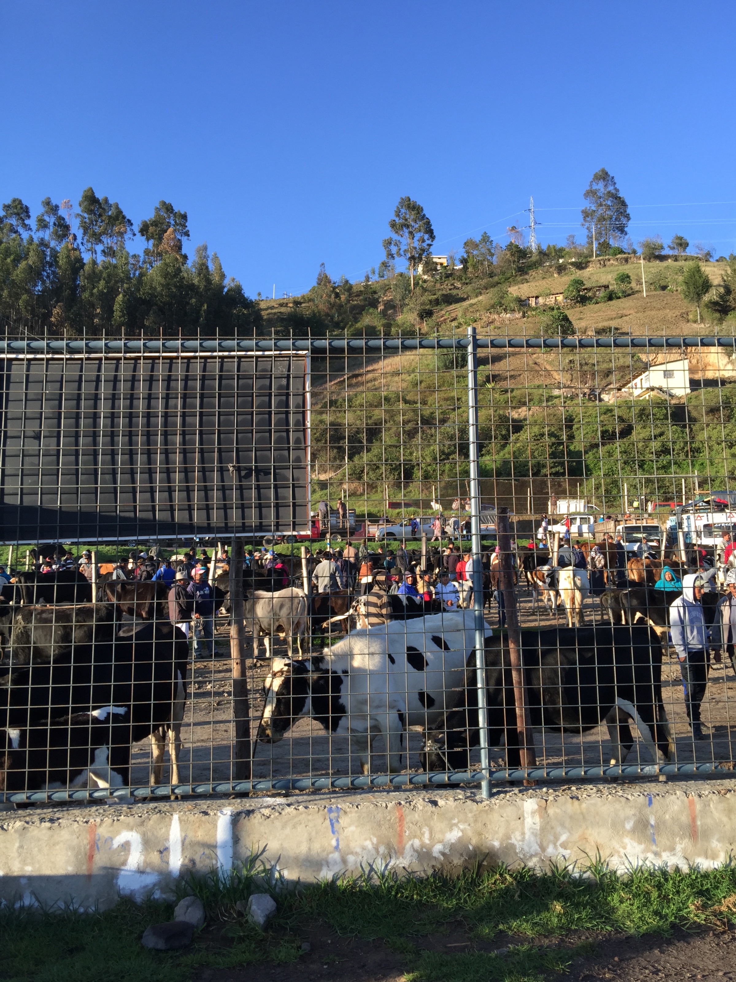 Otavalo est une ville de 40 000 habitants, connue pour son marché artisanal indigène. Y étant par hasard un samedi, nous avons pu assister au marché local des animaux, en essayant de photographier discrètement.