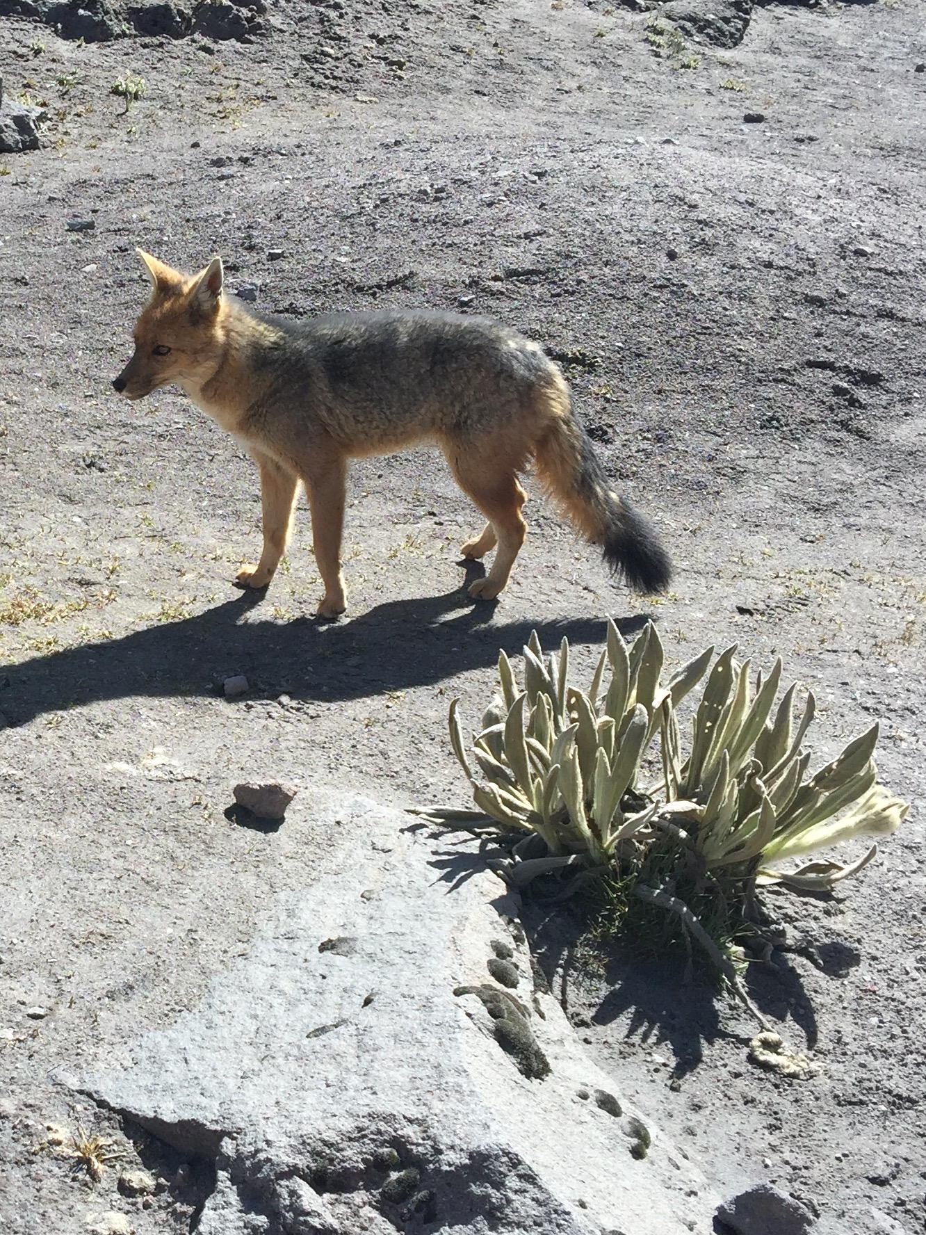 Un loup des andes peu farouche et qui ressemble plus à un renard est venu reniffler nos sandwichs.