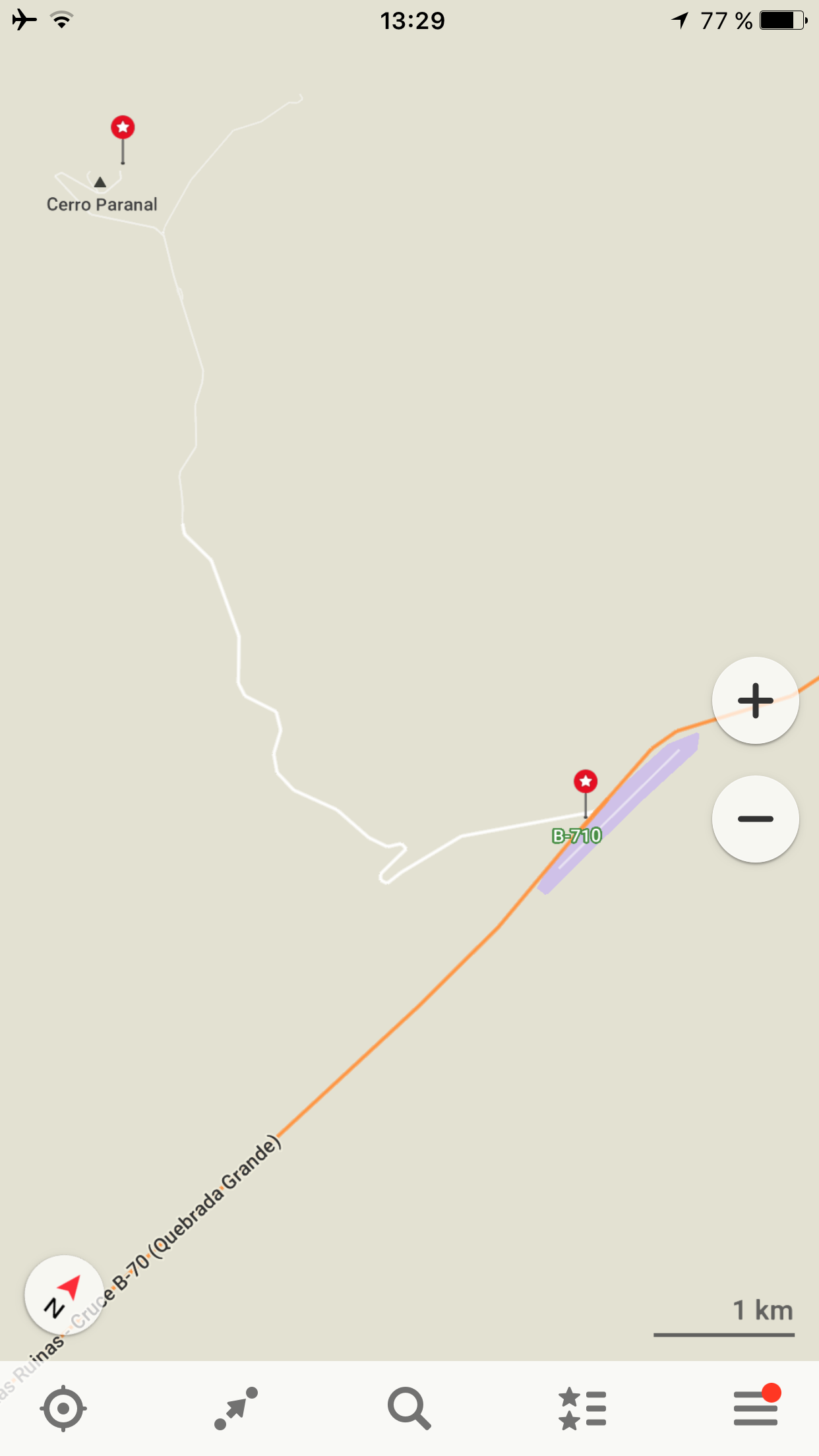 Il nous fera finalement descendre dans le noir, dans le désert, à 5h du matin et à 50km de l’endroit où nous pensions qu’il nous déposerait (Oups). Un camion de Coca Cola nous repère en train d’agiter les lampes torches de nos téléphones, et nous dépose gentiment à l’intersection de la route menant à l’observatoire (chemin en blanc ci-dessous). Les premières lueurs du soleil apparaissent et il nous reste encore 1h30 de marche dans le désert. Ça y est, nous sommes arrivés à Paranal !