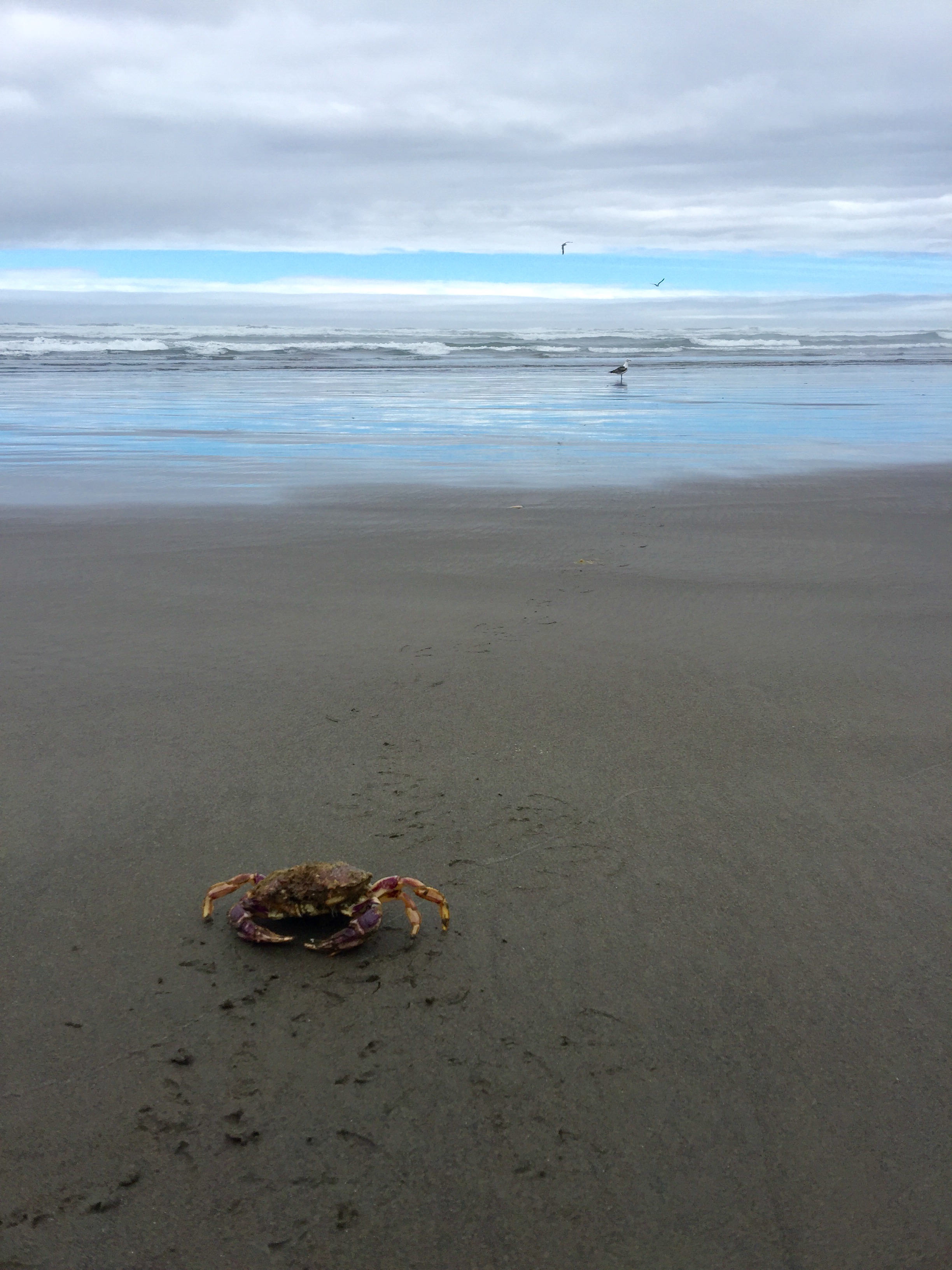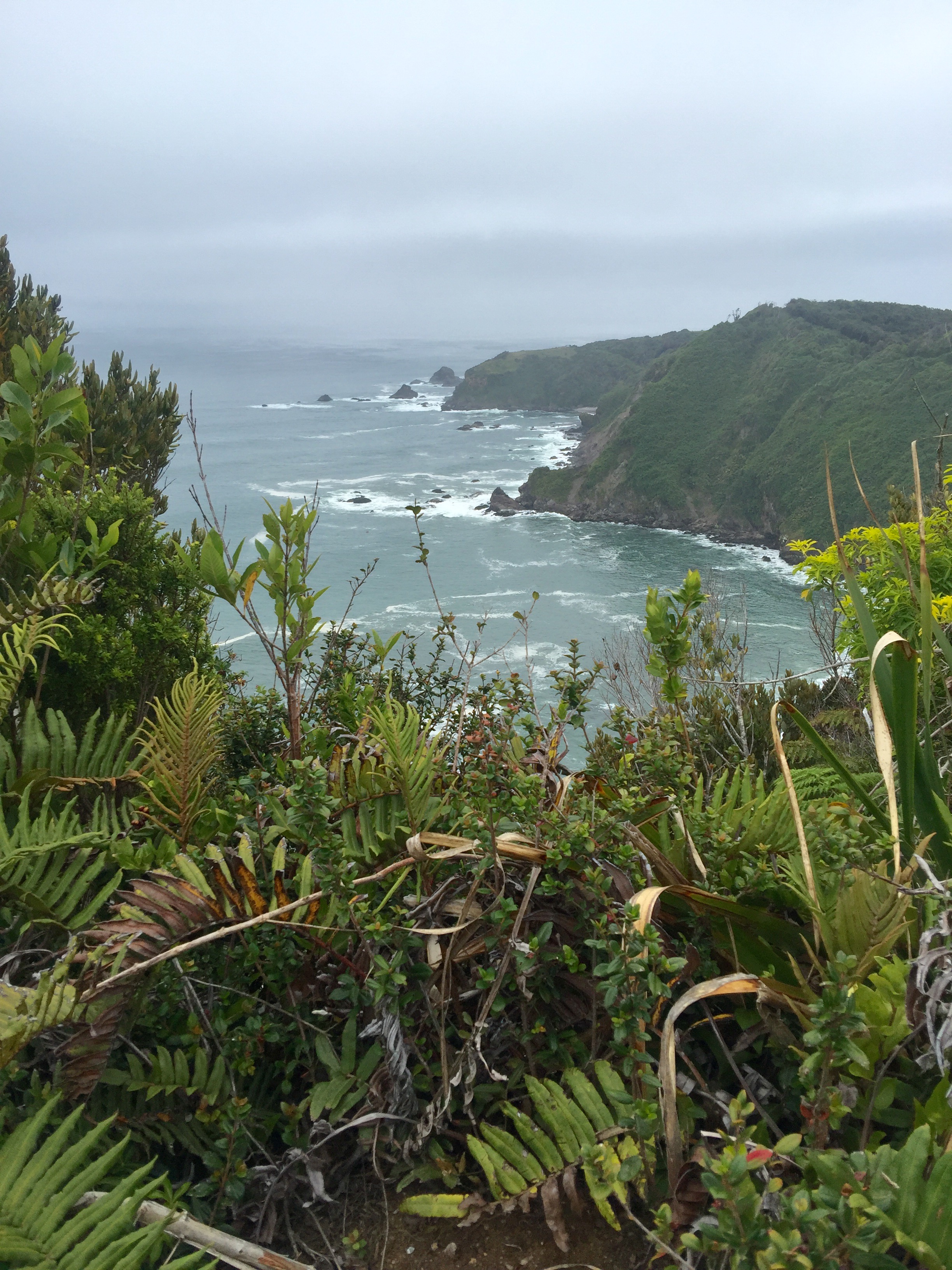 La randonnée Cucao – Cole Cole, traverse une grande plage embrumée, où nous avons rencontré un pingouin, un crabe, des mouettes, une vache (?), des perroquets…
