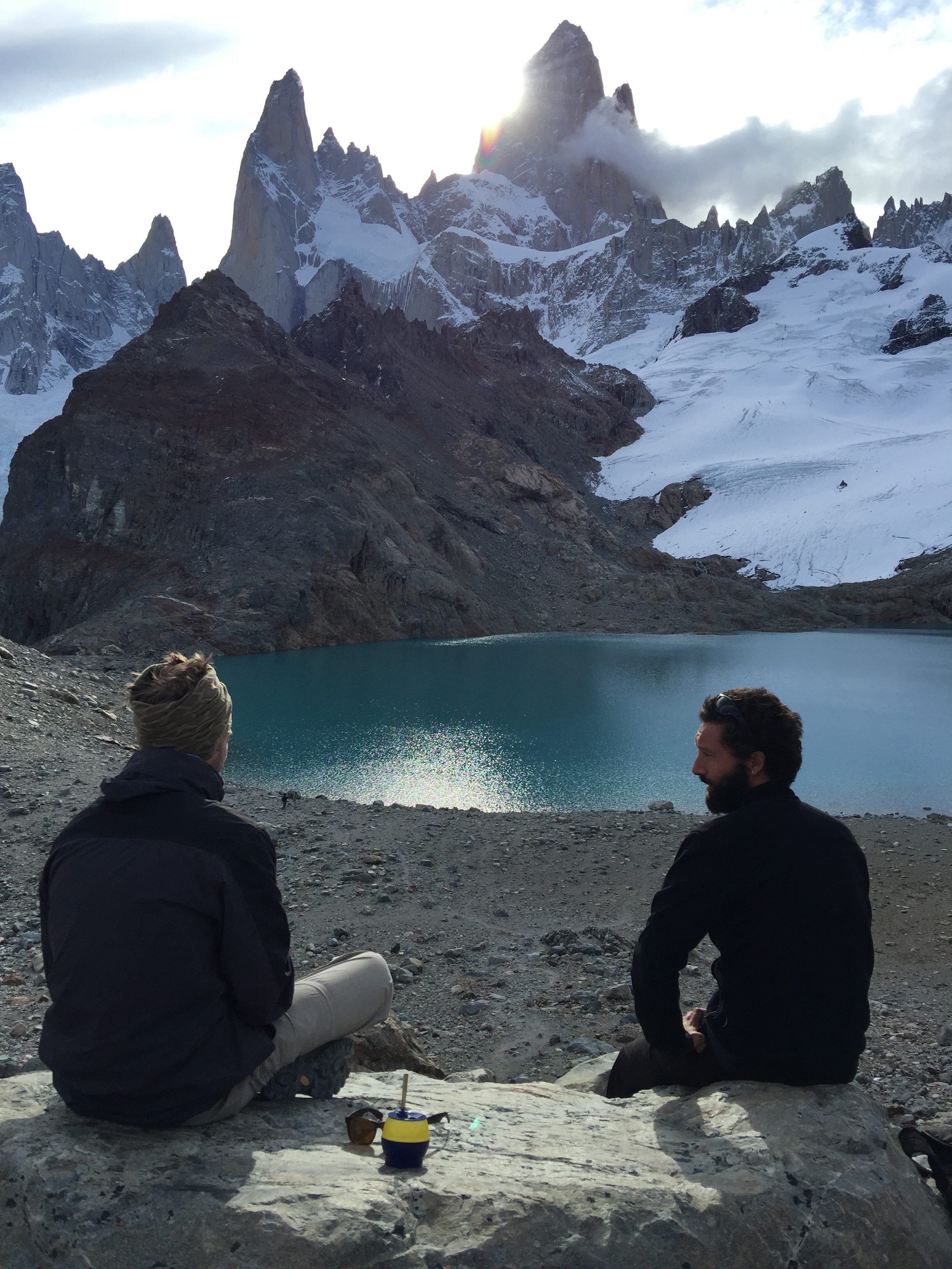 Nous avons pu prendre notre premier mate en face du Fitz Roy au soleil couchant 😀