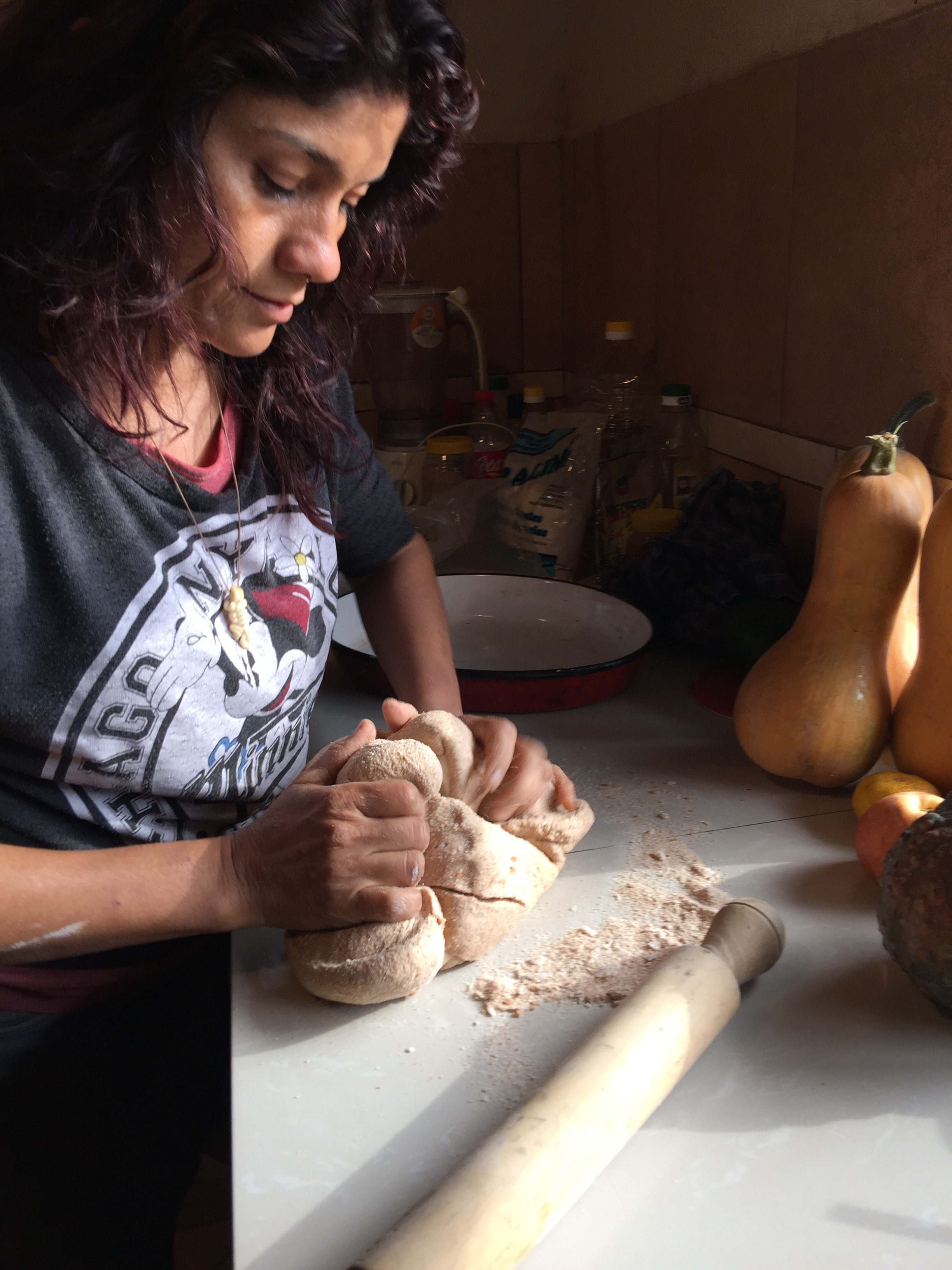 Nous y avons appris à faire plusieurs recettes végétalienne, dont les pains nans indiens. Miam !