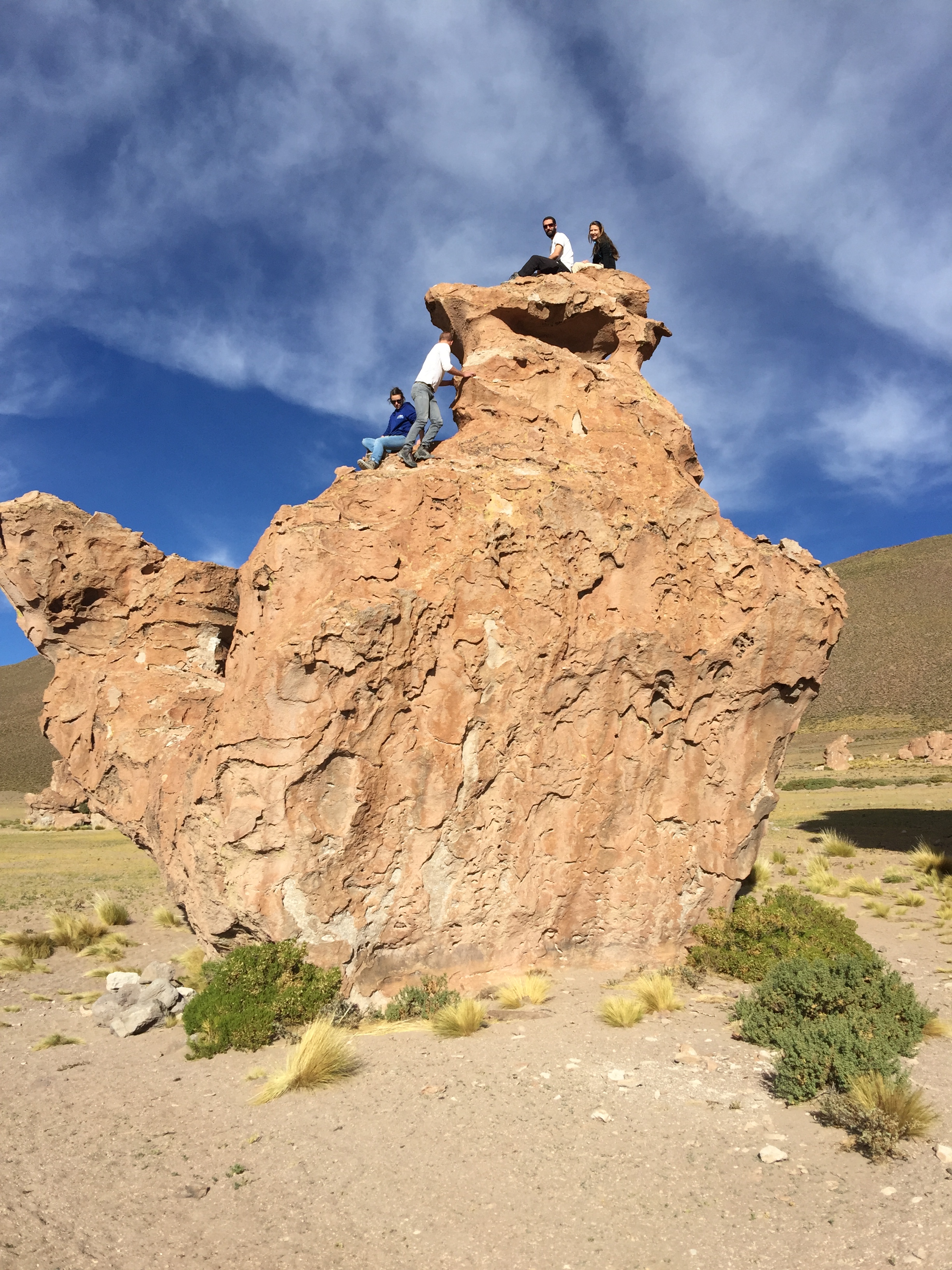 Le tour du sud Lipez, c’est : un chauffeur-guide, une cuisinière, 4 touristes (dont nous), entassés à l’arrière d’un 4×4 de l’agence Los Salares dans des paysages magnifiques.