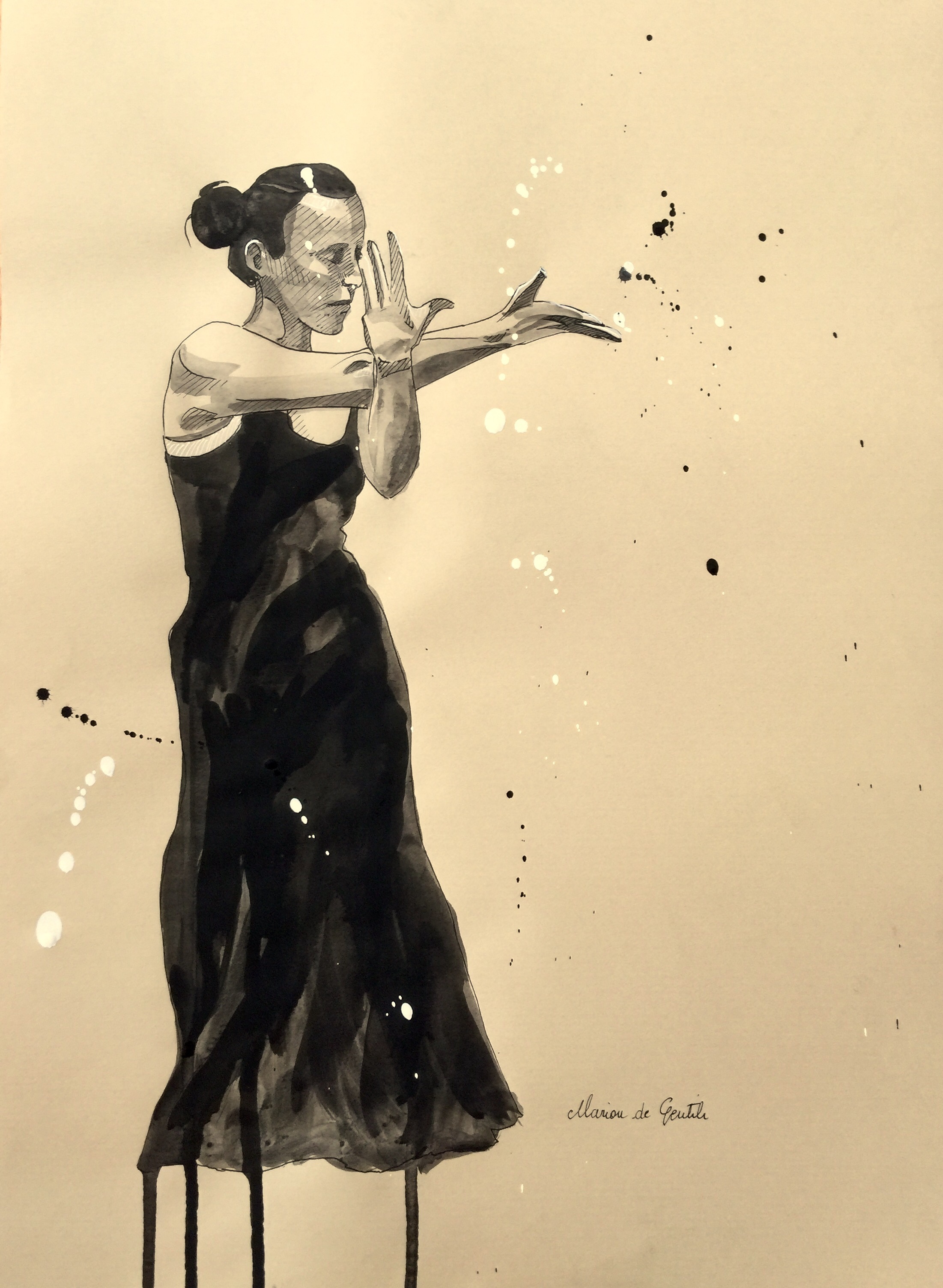 11/06/2016 : La danseuse 2 – encre de chine A3 Une nouvelle danseuse ! J’ai pris des vidéos de la séance d’entrainement, donc je pourrais en faire bien plus 🙂