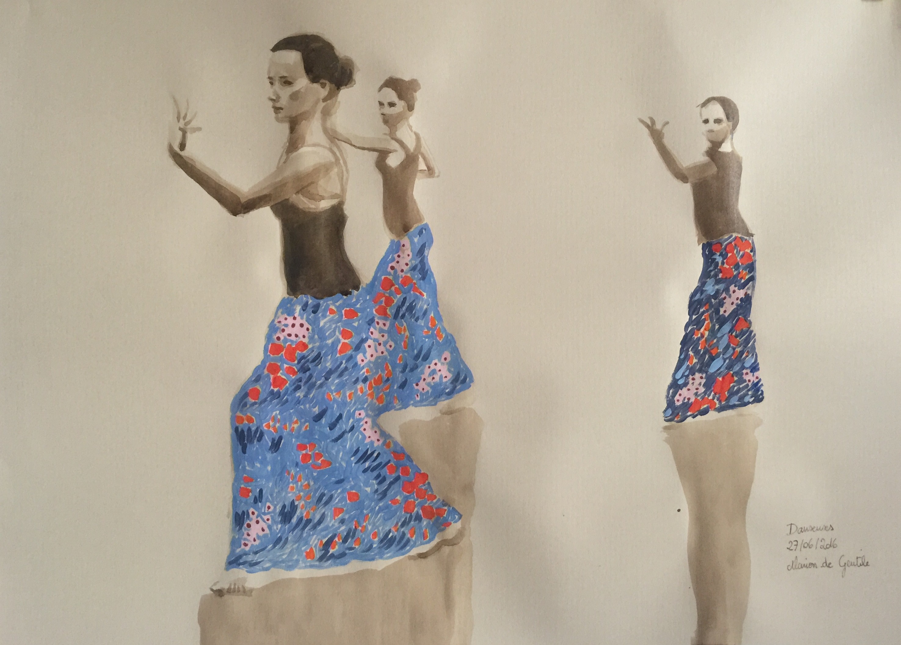 25/06/2016 : Danseuses – Encre de Chine et gouache 21 x 28 cm Vendue