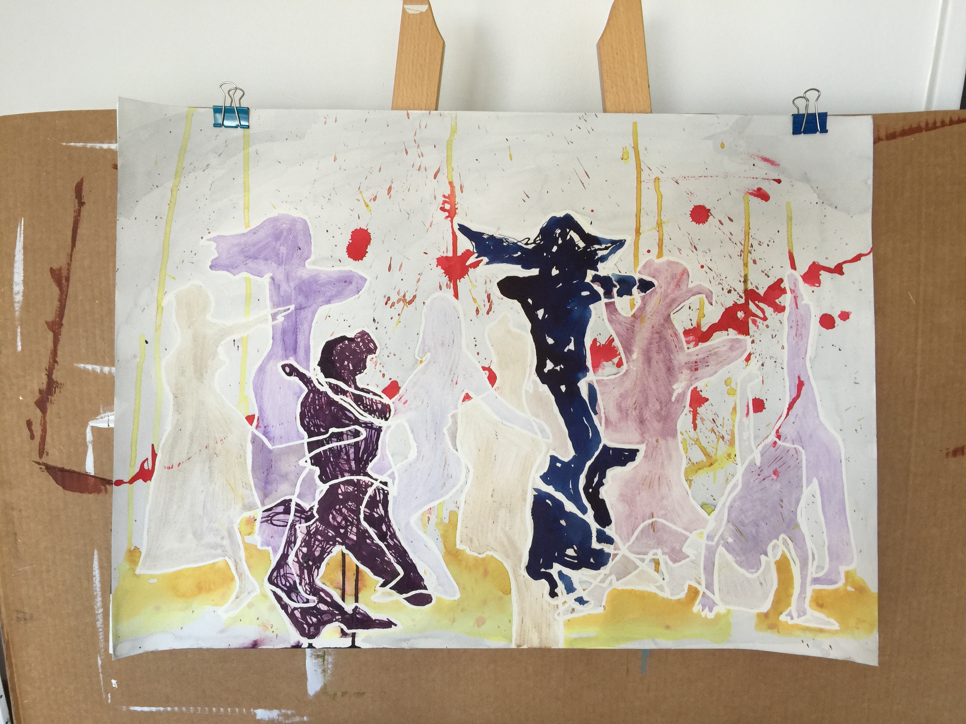 J’ai décidé de reprendre la peinture réalisée pendant la répétition générale du spectacle Air.